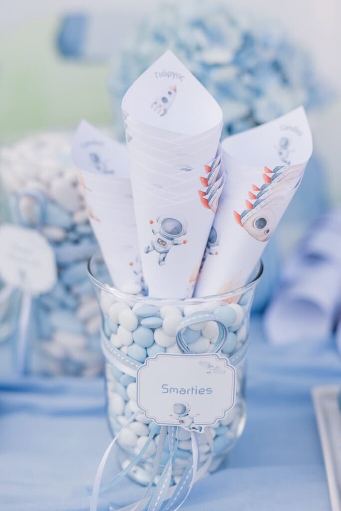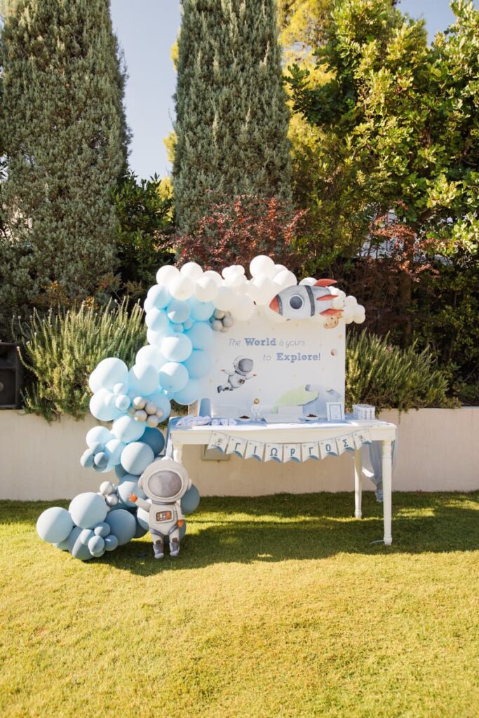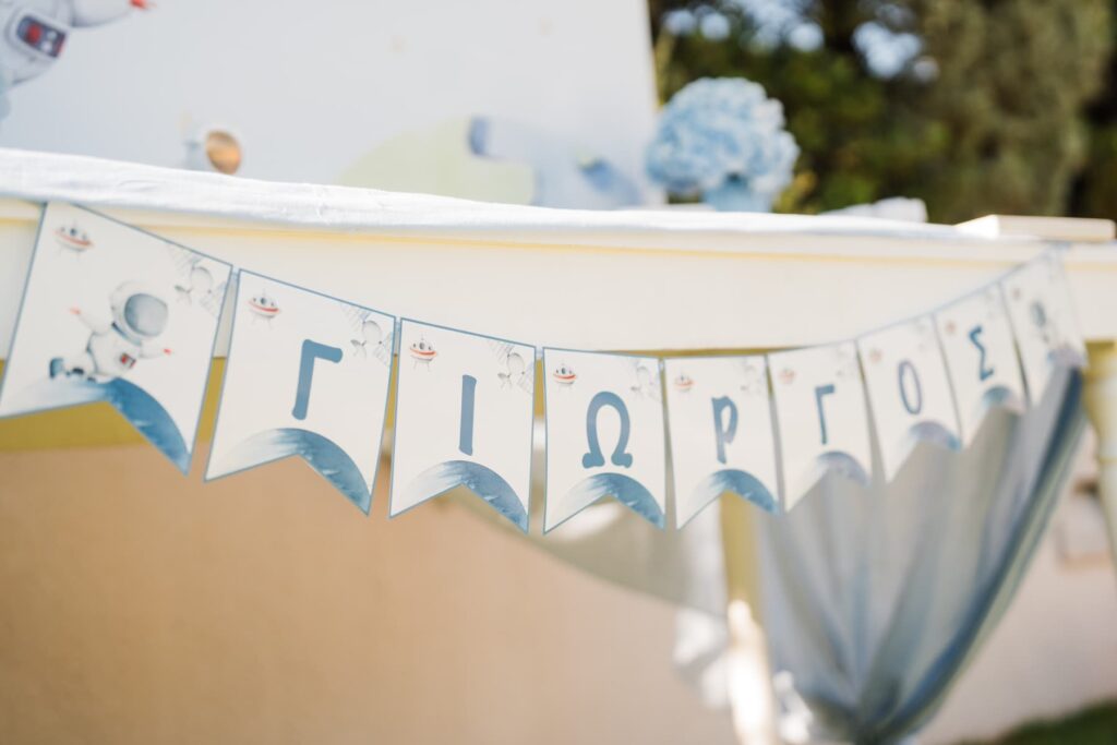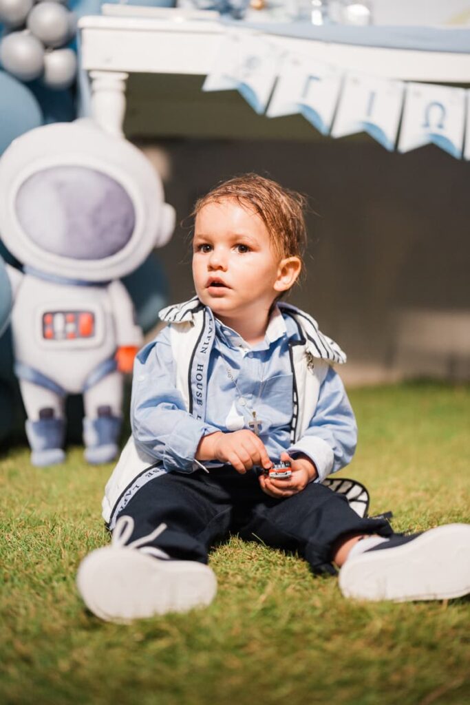 Ένα ονειρικό σκηνικό με πλανήτες και αστέρια υποδέχθηκε τον μικρό πρωταγωνιστή της ημέρας. Αυτό το concept έδωσε την ιδανική αφορμή στον Φωτογράφος Βάπτισης για λήψεις γεμάτες φαντασία. Πράγματι, ο καταπράσινος κήπος φιλοξένησε μια σύγχρονη γαλαξιακή γιορτή. Εκεί, το φυσικό φως ανέδειξε κάθε λεπτομέρεια του στολισμού. Επιπλέον, οι καθαρές γραμμές και οι μπλε-λευκές αποχρώσεις δημιούργησαν μια αισθητική που συνδυάζει τον αυθορμητισμό με το απόλυτο style. Μπορείτε να δείτε τις πρόσφατες δουλειές μας εδώ για μια ολοκληρωμένη εικόνα.