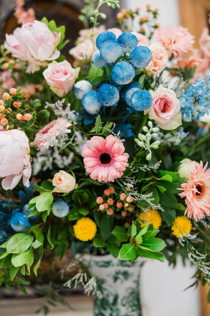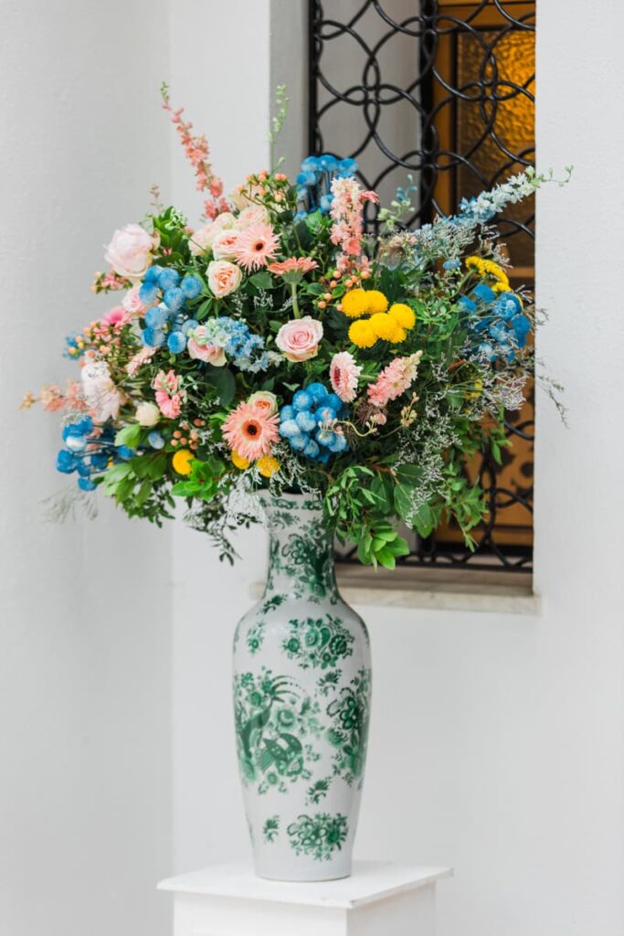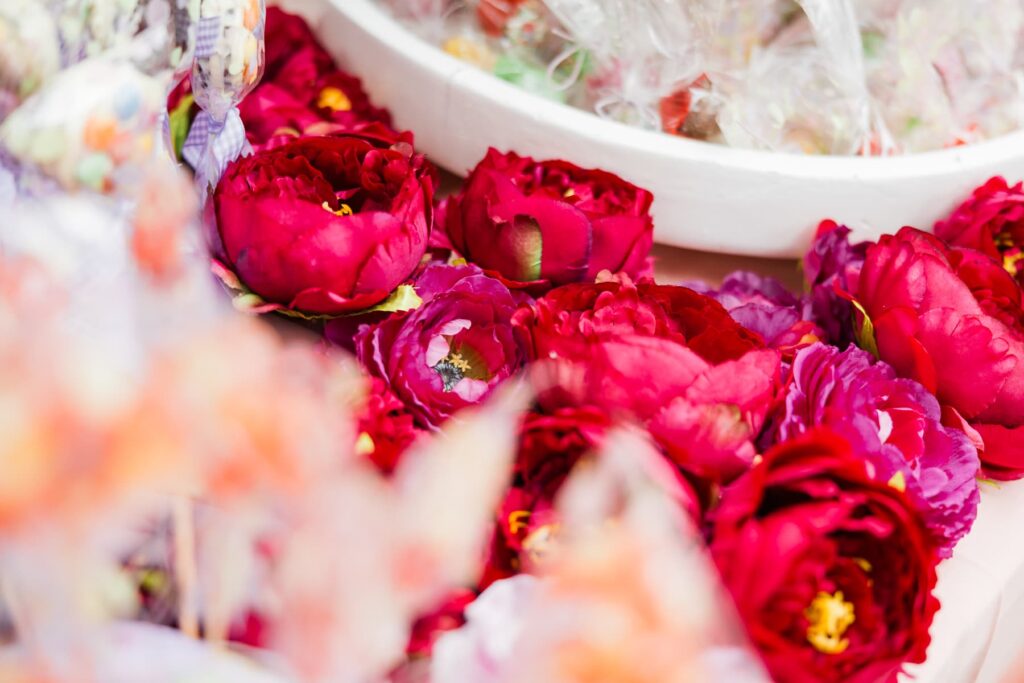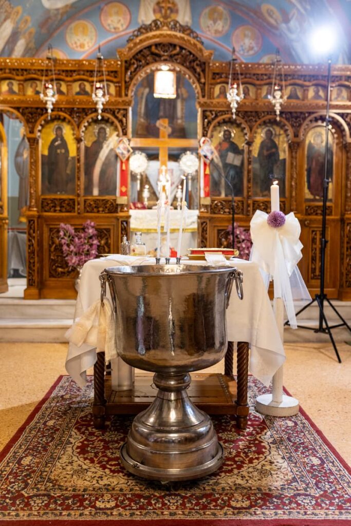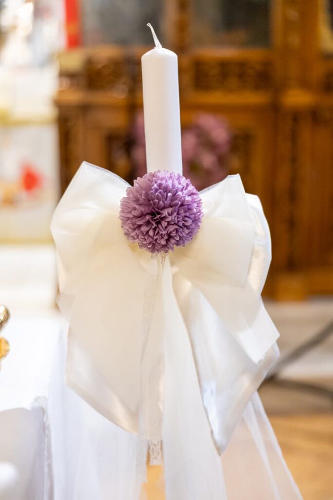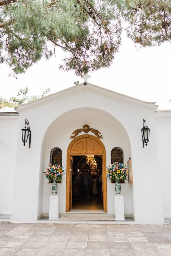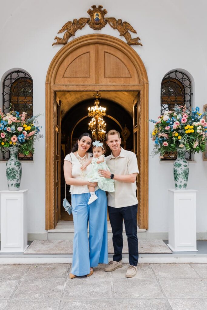 Εστιάσαμε στις αυθόρμητες στιγμές και στις δυνατές χρωματικές αντιθέσεις του στολισμού. Οι πολύχρωμες ανθοσυνθέσεις και ο διαμορφωμένος περιβάλλοντας χώρος της εκκλησίας αποτέλεσαν ιδανικό φόντο για φυσική και φωτεινή φωτογράφιση.